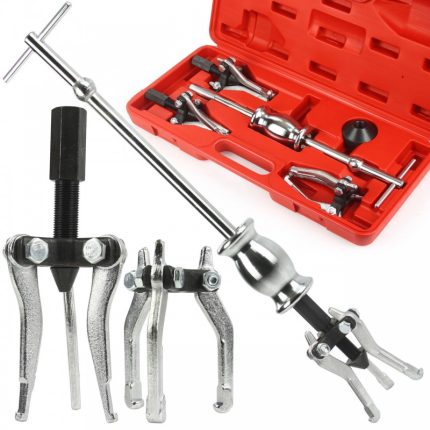 Обратен чук и комплект скоби с три рамена за демонтаж на вътрешни и външни лагери се използват по следния начин: първо, се блокира гайката, за да се отворят челюстите, а след това се закрепва лагерът. Накрая се използва обратният чук, за да се издърпа лагерът.