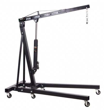 Хидравличен, сгъваем кран за двигатели тип жираф 2 тона RockForce ХАРАКТЕРИСТИКИ: Товароносимост: 2000 кг Работна дължина на стрелата – 1000 – 1570 мм Височина на повдигане – 2200 мм Тегло 79 кг
