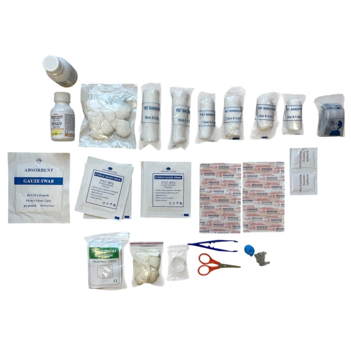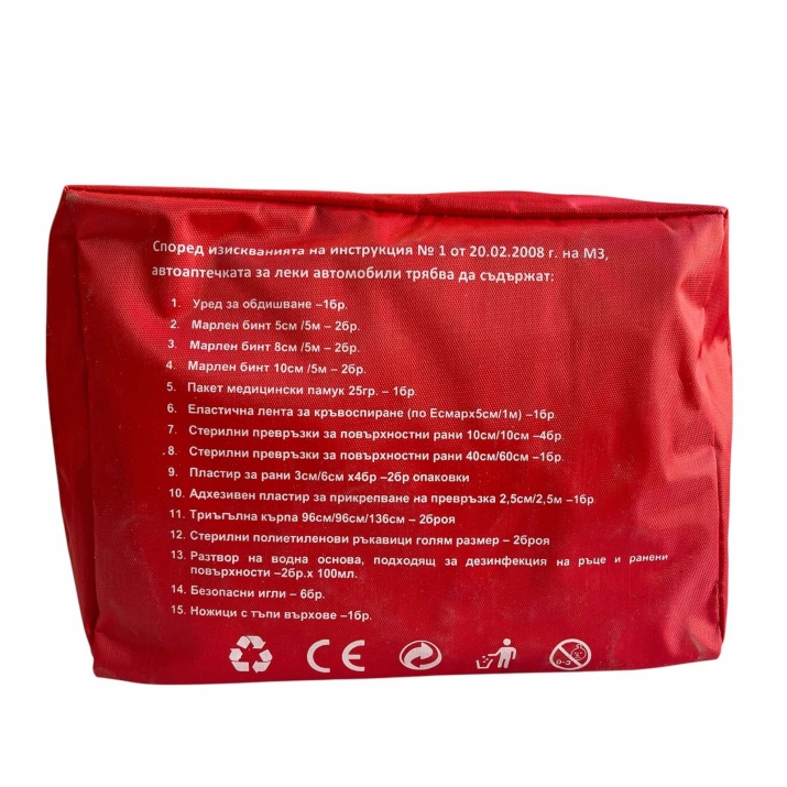автоаптечката за леки автомобили трябва да съдържа: - Кислородна вода – 2бр.