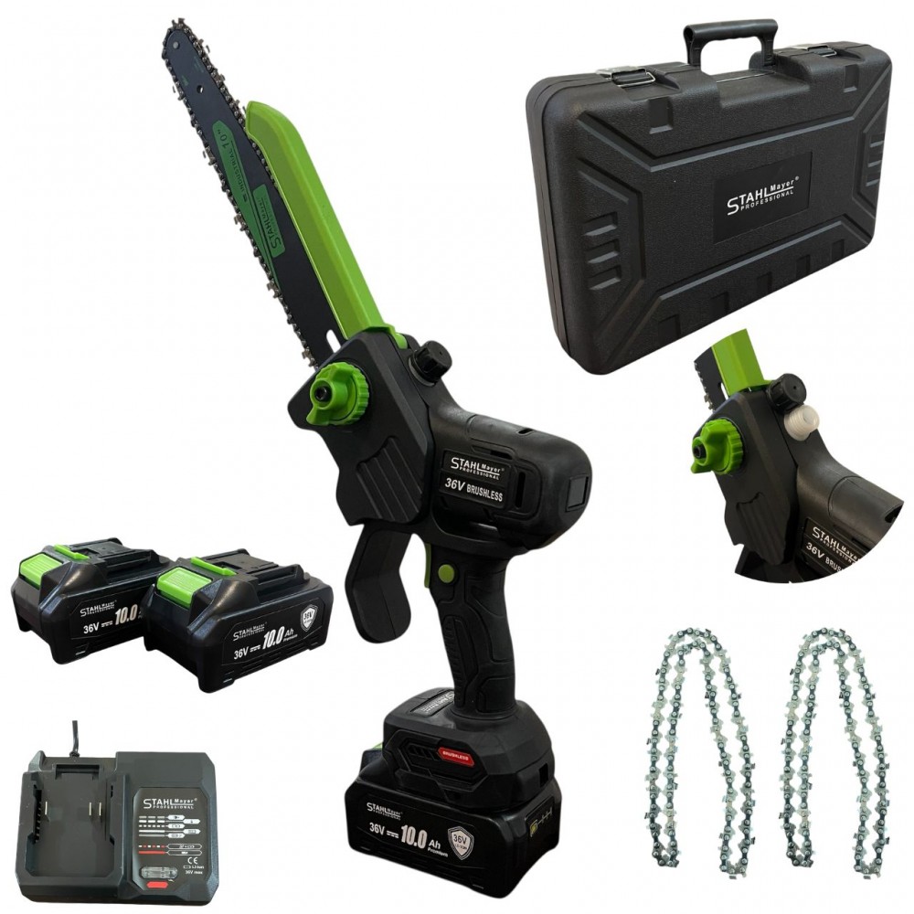 Акумулаторна резачка STAHLMAYER 36V 10AH с дисплей, две батерии и две вериги – 30см шина