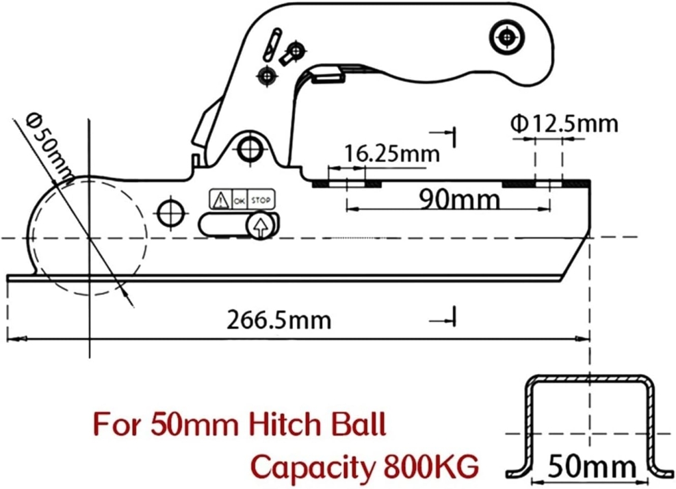 Заключваща лапа за теглич на ремарке 50мм 800кг