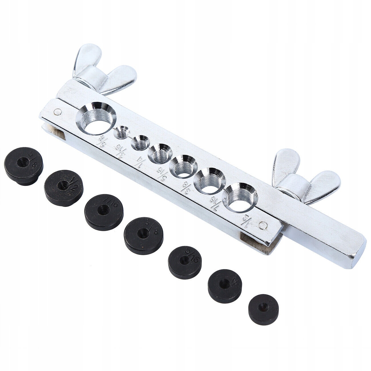 Конусната дъска осигурява прецизно и равномерно разширяване под ъгъл 45°, което гарантира надеждно и плътно съединение на тръбите. Комплектът включва различни адаптери, съвместими с най-често използваните размери тръби, както и резачка за чисто и точно отрязване.