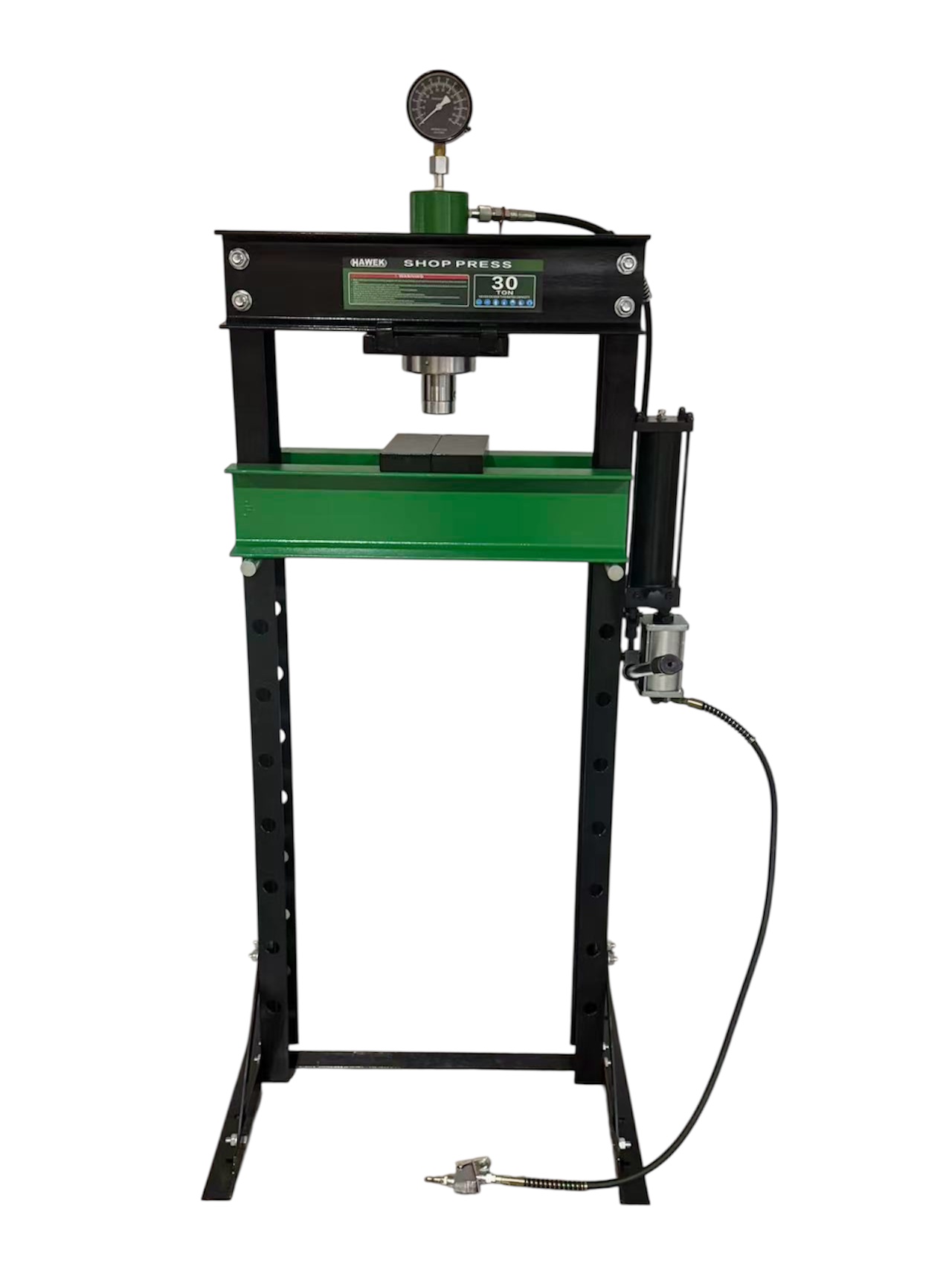 Пневмо-хидравличната подова преса HAWEK 30 тона е високоефективно оборудване, предназначено за професионална работа при пресоване, огъване, монтаж и демонтаж на лагери, втулки и тежки метални детайли. Подходяща е за автосервизи, индустриални предприятия и професионални работилници.