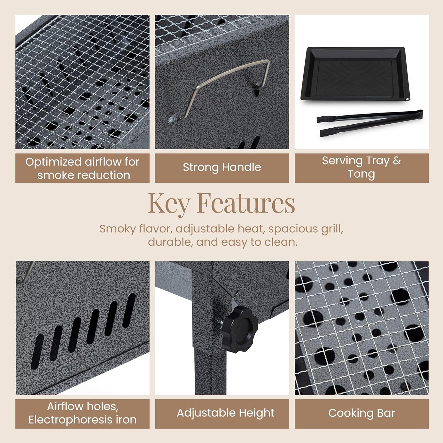 Това преносимо барбекю на дървени въглища е перфектният спътник за вашия къмпинг, пикник или градинско парти. Изработено от висококачествена неръждаема стомана, то съчетава издръжливост с изключително лесен транспорт.