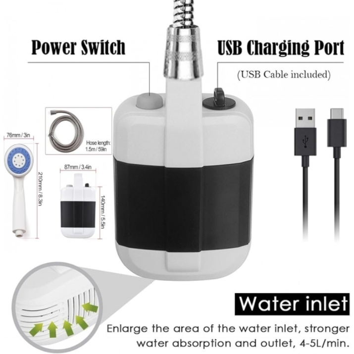 - Преносим портативен душ с USB зареждане за къмпинг пътувания и градина