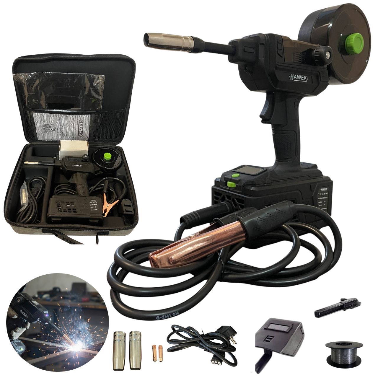 Благодарение на инверторната технология на Hawek, машината осигурява стабилна дъга, равномерен шев и минимални пръски, без нужда от бутилки, редуцири и маркучи.