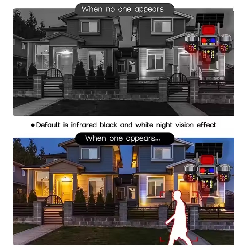 Соларната охранителна камера Sunvision е модерно и напълно автономно решение за външно видеонаблюдение. Съчетава тройна камера система, ултра висока резолюция 16 MP, соларно захранване и безжична Wi-Fi връзка, осигурявайки максимална сигурност дори на места без електричество.