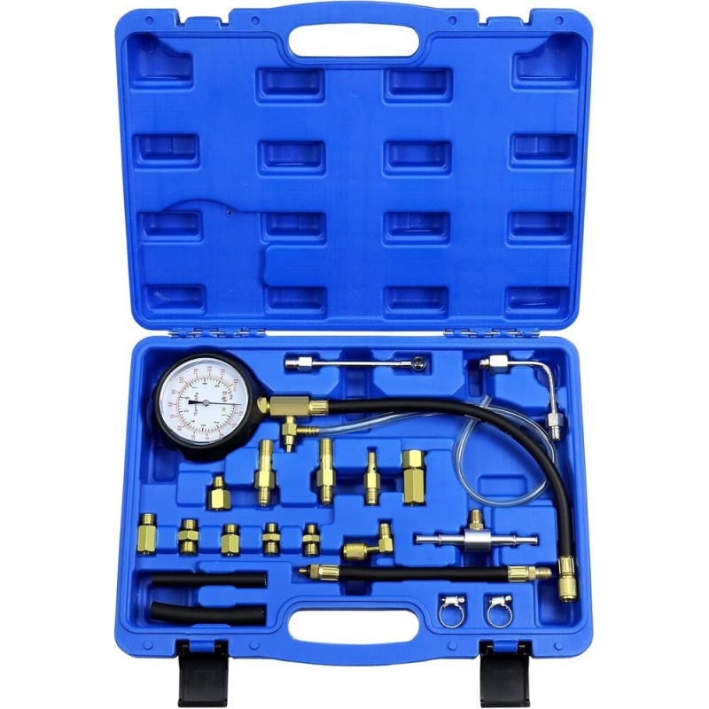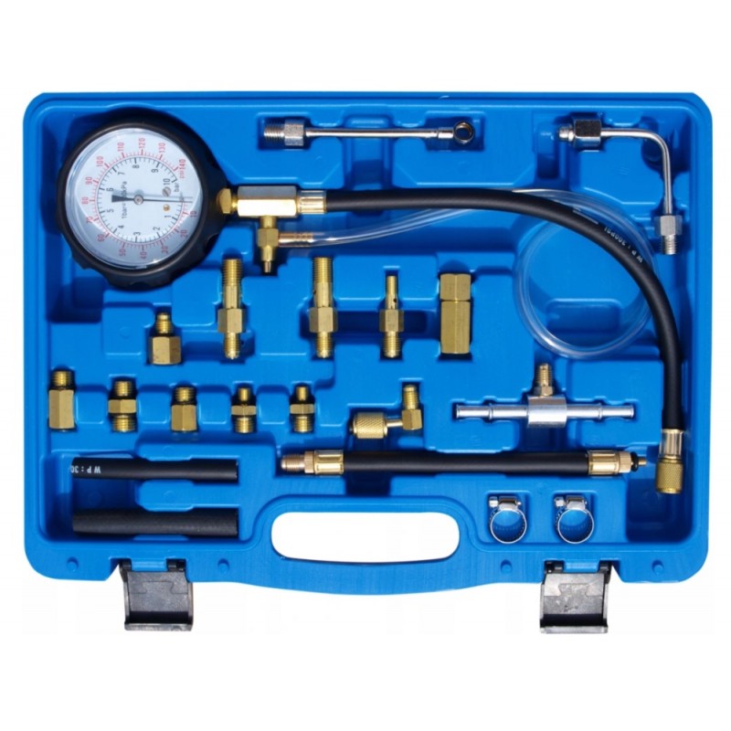 Универсален и многофункционален комплект за измерване на налягането на гориво и масло. Подходящ за диагностика на повечето автомобили, оборудвани със системи за впръскване. Благодарение на разнообразието от адаптери и фитинги, комплектът осигурява точни и безопасни измервания.