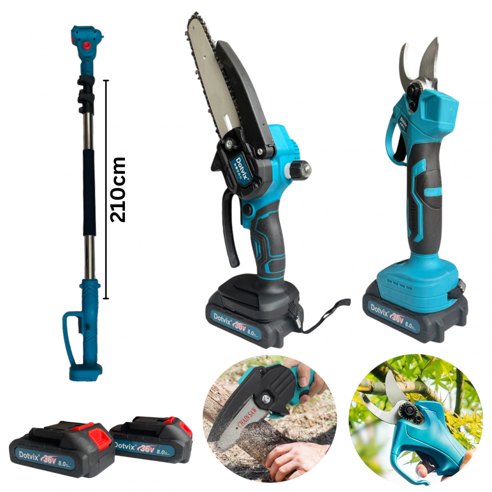 3в1 Акумулаторна Лозарска Ножица и Трион с Омасляване и телескопичен прът 36V 8AH – Dotvix